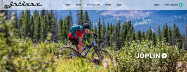 Juliana Bicycle 的網(wǎng)站首圖同樣是將產(chǎn)品置于使用場景中。