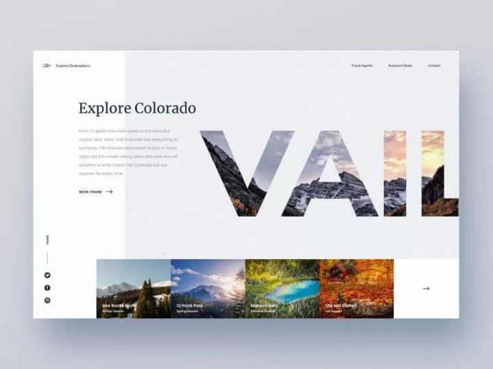 因?yàn)槎嗝骟w是如此獨(dú)特的設(shè)計元素,大多數(shù)項(xiàng)目都以明亮的顏色來突出重點(diǎn)。只是要小心嘗試在傾斜或奇怪的形狀配置中加入元素;這可能會使元素文本難于閱讀。