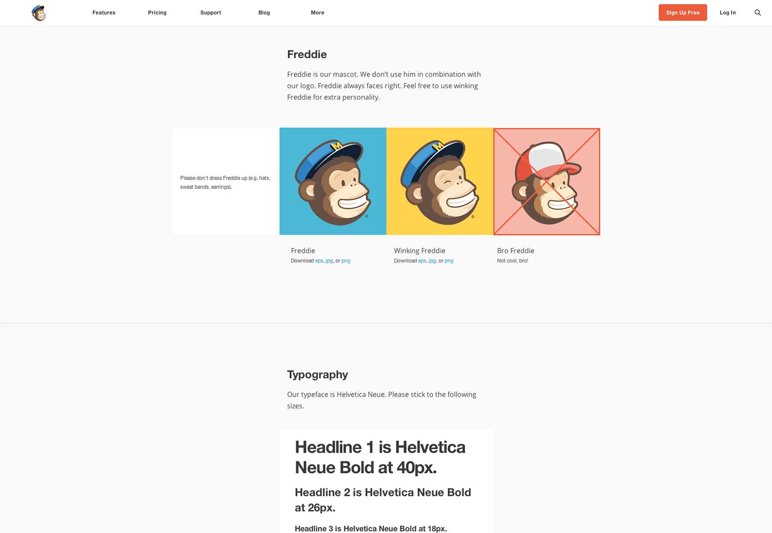 MailChimp有個(gè)非常有名的吉祥物,名叫Freddie,它在傳遞企業(yè)理念和講述企業(yè)故事上有著極大的貢獻(xiàn)。MailChimp不論是在業(yè)務(wù)還是在生活上都奉行輕松而非嚴(yán)肅的理念,而Mailchimp在描述Freddie的時(shí)候,字里行間也能看出這家企業(yè)的精神。
