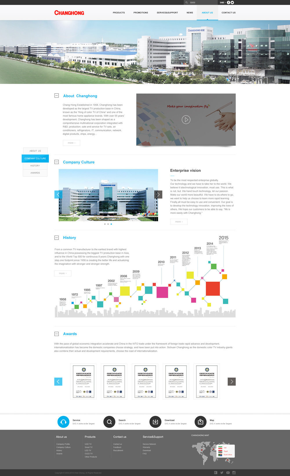 目前,長(zhǎng)虹正秉持“員工滿意、顧客滿意、股東滿意”的核心價(jià)值理念,恪守“責(zé)任、堅(jiān)韌、創(chuàng)新”的企業(yè)精神,憑借品牌、技術(shù)、產(chǎn)業(yè)、人才、市場(chǎng)、服務(wù)等強(qiáng)大實(shí)力,全力推進(jìn)制造業(yè)升級(jí)、服務(wù)業(yè)轉(zhuǎn)型和全球化發(fā)展,逐步將長(zhǎng)虹建設(shè)成為全球值得尊重的企業(yè)。